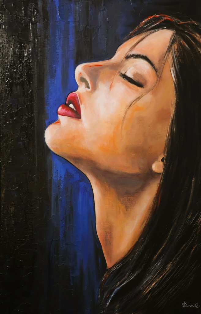 A travers ses portraits, elle invite le spectateur à entrer dans un face-à-face intime où se mêlent intensité, sensibilité et esthétique contemporaine.