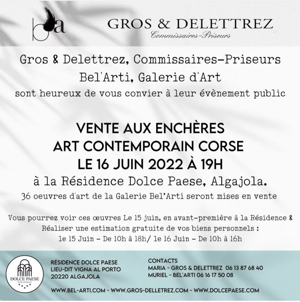 EXPOSITION 18 JUILLET 2022 AUBERGE DU COUCOU DIN’ARTMUZIK A CALENZANA AVEC LA GALERIE BEL’ARTI